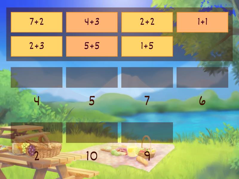 2+3 - 5, 1+5 - 6, 5+5 - 10, 7+2 - 9, 4+3 - 7, 1+1 - 2, 2+2 - 4,