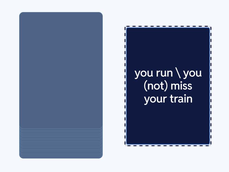 we(not) have a picnic/it rain, you park here\ the police give you a ticket, you eat healthy food\live longer, you sleep better/you (not watch TV before bedtime), you smile more\ you make more friends, the lift go up\you press this button, you turn the knob to the left\ the temperature rise, you (not) say it louder\nobody hear you, you (not) know which colour you want\they select one for you, you cook\I wash up, you drop a slice of bread\it fall butter-side down, you forget your new password\ you (not)write it down, you give me your new number\ I call you, you run \ you (not) miss your train, the video start\ you push "play", you order a medium pizza\ you get another one free, you hurt your back\you lift that box, you (not) hurry up/ you miss the bus, you (not) make a mistake \ you follow the instructions carefully, life on Earth be destroyed\ an asteroid hit it, you (not) book your flight now\ there (not) be any tickets left.