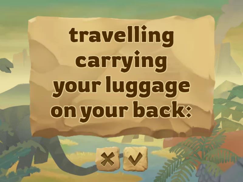 move your hand in the air to attract someone's attention or say goodbye: - wave, travelling carrying your luggage on your back: - backpacking, people watching a performance: - audience, a place specially built for tourists to have everything they need: - holiday resort, words you say when you act in a play: - lines,