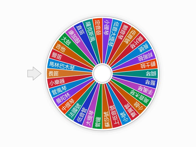 1) 鋼琴 2) 管風琴 3) 手風琴 4) 鋼片琴 5) 吉他 6) 小提琴 7) 中提琴 8) 大提琴 9) 低音大提琴 10) 豎琴 11) 曼陀林 12) 直笛 13) 長笛 14) 豎笛 15) 薩克斯風 16) 雙簧管 17) 低音管 18) 小號 19) 法國號 20) 長號 21) 上低音號 22) 低音號 23) 蘇莎號 24) 小樂器 25) 大鼓 26) 小鼓 27) 爵士鼓 28) 康加鼓 29) 邦哥鼓 30) 定音鼓 31) 高音木琴 32) 馬林巴木琴 33) 顫音琴 34) 管鐘