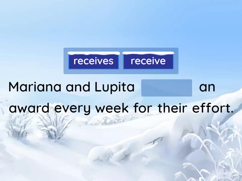 I ____ a big jacket for the winter. My sister ____ a secret in my ear. The teachers ____ to school to arrive on time. They ____ with the rules in the classroom. Jonah ____ insects on his free time. Mariana and Lupita ____ an award every week for their effort. My friend ____ with his little sister all the time. Carlos and Viviana ____ pasta every weekend. Juanita ____ for her English exam. My dad ____ the ball every time at the game.