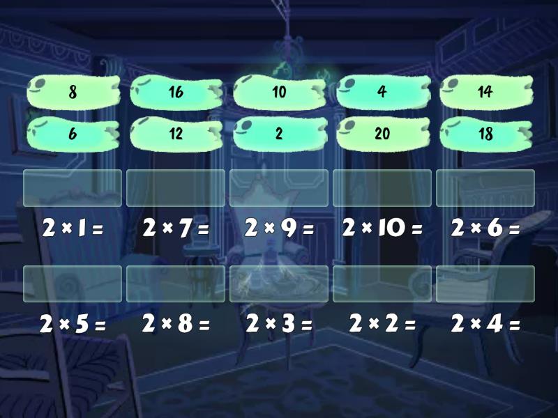 12 - 2 × 6 =, 20 - 2 × 10 =, 4 - 2 × 2 =, 16 - 2 × 8 =, 14 - 2 × 7 =, 8 - 2 × 4 =, 10 - 2 × 5 =, 2 - 2 × 1 =, 18 - 2 × 9 =, 6 - 2 × 3 =,