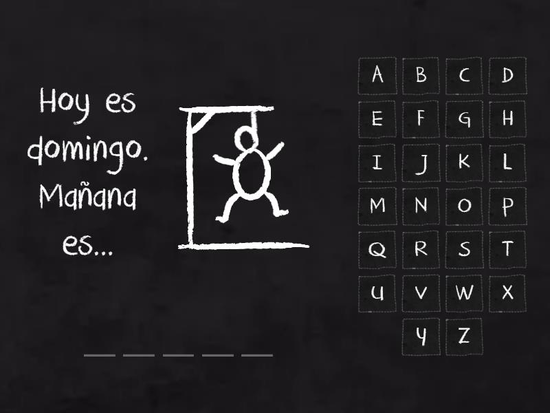 lunes - Hoy es domingo. Mañana es..., sábado - Hoy es viernes. Mañana es..., viernes - Hoy es jueves. Mañana es..., domingo - Hoy es sábado. Mañana es..., martes - Hoy es lunes. Mañana es..., miércoles - Hoy es martes. Mañana es...,