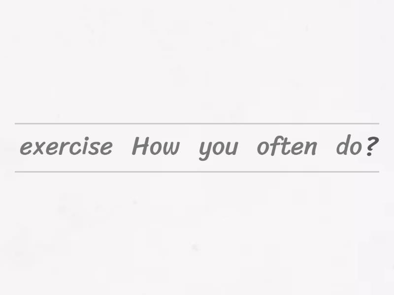 How often do you exercise?, How much water do you drink every day?, How many hours do you sleep at night?, What kind of books do you like to read?, What time do you usually wake up in the morning?, Who do you usually go to the movies with?, Did you finish your homework?, Who is your best friend at school?, Where is your favorite place to relax?, Is the store open on Sundays?,