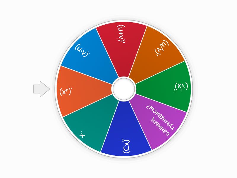 1) (u·v)' 2) (u+v)' 3) (u/v)' 4) (√x)' 5) санның туындысы? 6) (Cx)' 7) x' 8) (xn)'