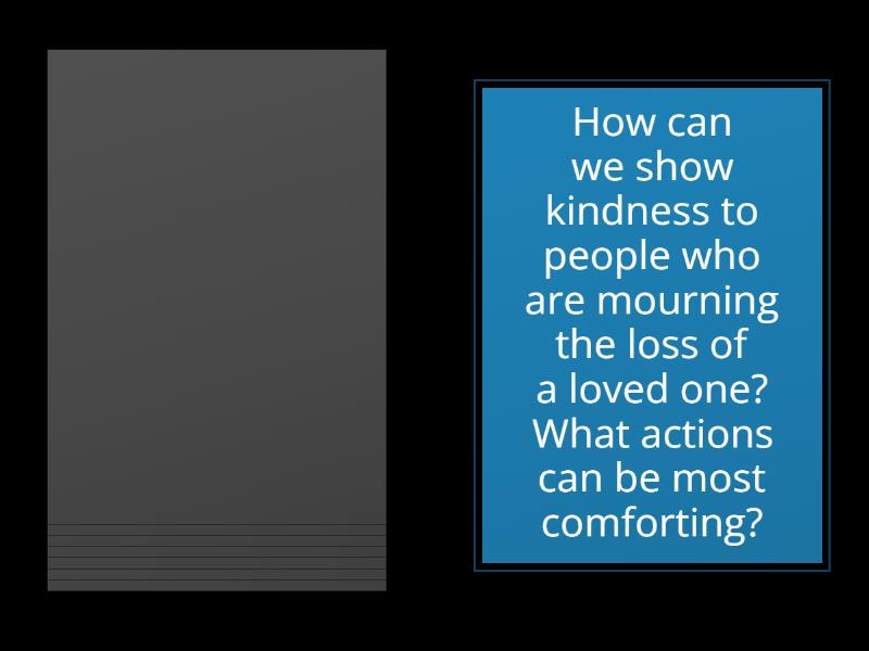 : Have you ever felt desperate to help someone who was going through a tough time?, Have you ever babysat for someone, and how did that experience impact you?, Can you recall a time when you gave someone a rave review for their kindness or generosity?, Can you think of a time when someone was a real comfort to you? How did their kindness impact you?, How can we show kindness to people who are mourning the loss of a loved one? What actions can be most comforting?, What are some kind gestures you might offer to someone who has to sleep rough or is homeless?, If you see someone who is stranded or in need of help, what are some kind actions you could take?, Have you ever received a rave review or positive feedback? How did it make you feel?,