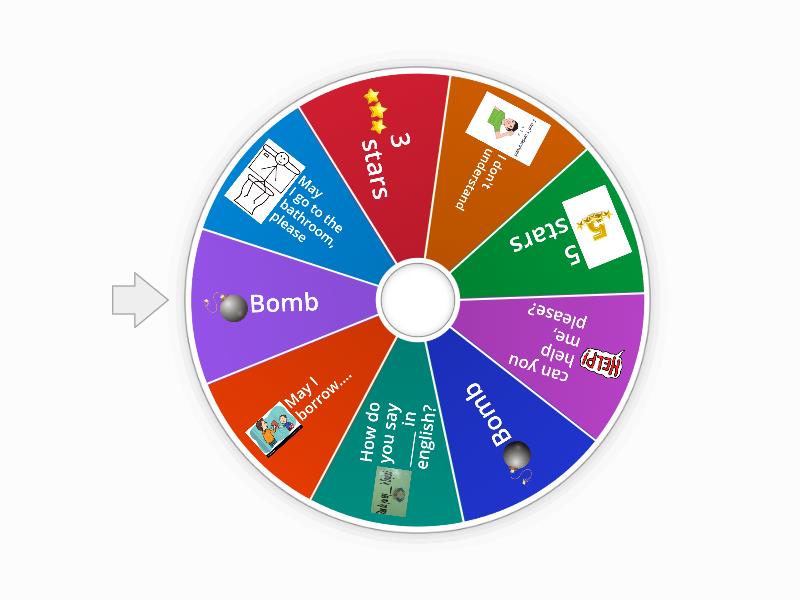 1) May I go to the bathroom, please 2) 3 stars 3) I don't understand 4) 5 stars 5) can you help me, please? 6) Bomb 7) How do you say _____ in english? 8) May I borrow.... 9) Bomb