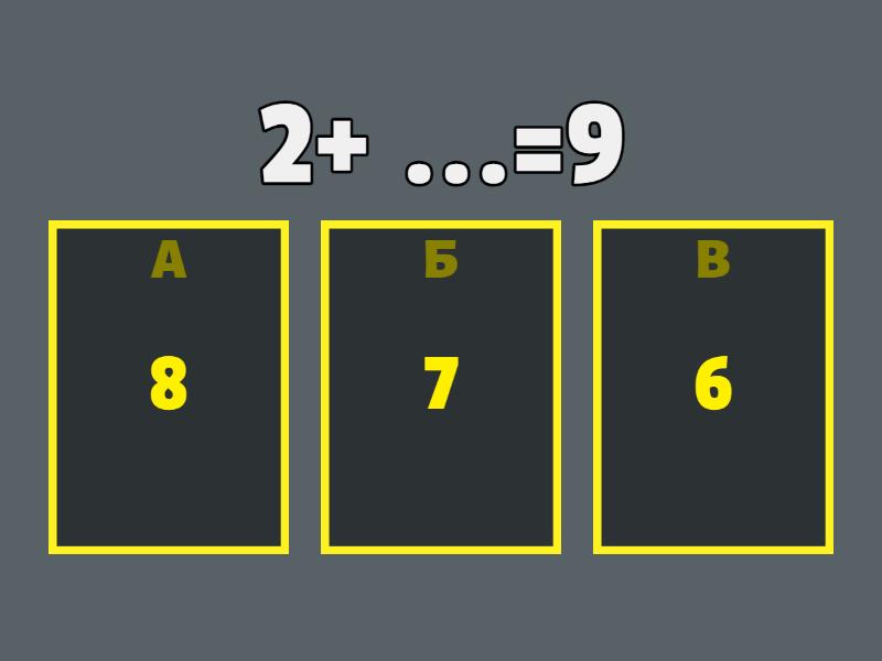 1) 2+ ...=9 a) 8 b) 7 c) 6 2) 4+...=9 a) 3 b) 5 c) 6 3) 3+...=7 a) 5 b) 2 c) 4 4) 4+...=8 a) 5 b) 3 c) 4 5) 5+...=7 a) 4 b) 3 c) 2 6) 6+...=7 a) 1 b) 2 c) 3 7) 3+...=5 a) 1 b) 2 c) 3 8) 8+...=9 a) 1 b) 2 c) 3 9) 9+...=9 a) 1 b) 0 c) 2 10) 5+.. = 5 a) 0 b) 1 c) 2