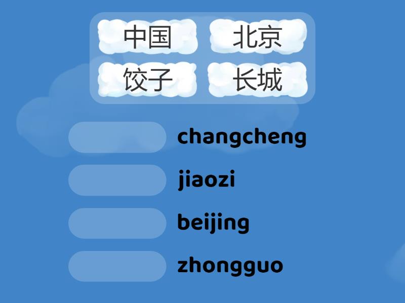 中国 - zhongguo, 长城 - changcheng, 饺子 - jiaozi, 北京 - beijing,