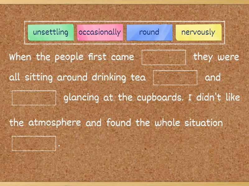 When the people first came ____ they were all sitting around drinking tea ____ and ____ glancing at the cupboards. I didn’t like the atmosphere and found the whole situation ____. I was beginning to ____ why I had asked these people ____ to go ____ my stuff and take what they wanted. Then my sister Louise arrived ____ the door. Without putting ____ her bag or saying hello, she headed ____ the bedroom, ____ on her face. She couldn’t get there quick enough. ‘I knew she’d be the competition!’ cried my friend Rosa, jumping ____ the sofa and ____ in the same direction. This is what happens ____ you open your home to friends, family and neighbours, telling them they can ____ themselves ____ everything ____ it. Moments later, Rosa and Louise reappeared with ____ of clothes and pot plants. I was surprised that they hadn’t taken the whole lot. Last month, I moved ____ for two years to study, taking just a ____ suitcase with me. I couldn’t ____ to keep my flat, so when it ____ to my possessions, extreme measures were called ____. Some of my stuff, like old novels and pairs of jeans, I could cope ____ giving ____. But there was a list of things like precious paintings and my childhood teddy bear that I couldn’t ____ myself to let go. I just wasn’t ____ to that. So, I decided to offer these things up for ____ term loan. It’s not recycling, or even ____: I’m calling it ‘sharecycling’. It was my beloved tent that formed the ____ of it. I made the decision as I thought about the pointlessness of putting stuff ____ storage ____ two years. ____, I imagined someone I loved putting my tent onto their back and setting ____ into the countryside in the summer sunshine. I was moving to the other side of the world, but this made it feel as ____ I would still, ____ some small way, be with my friends. And once I’d come ____ with the idea, it just grew and grew. I decided to give ____ everything – the plants on the balcony, the computer games, the chairs, ____ the towels in the bathroom. To get ____ of it all, I had an open house, inviting everyone I knew to take my ____. ‘This is just like ____ stealing!’ said one friend, as she loaded books by the ____ into a carrier bag. I became like a sales assistant. I recommended novels, waved toys ____ babies, and brought out coats and jeans for people to try ____. Now I am sitting in a flat on the other side of the world ____ the last of the ____ rains pour ____ outside, turning the pavements into ____ and sending the street sellers sheltering under doorways and umbrellas. I feel very ____ from my home, and from my stuff. That list I made of the things I want back? I’m not sure how much I’ll need it. ____ far, I haven’t missed any of my pictures, or that strange purse ____ like a mouse which I’ve had ____ I was seven years old. ____, I’ve missed my family, my friends, and my city. And my ‘sharecycling’ plan ties me back ____ them. A friend took my tent to a music festival. And my favourite picture ended ____ on the wall of my best friend’s flat ____ home. This is what gives me a real ____: the thought of all my ____ and pieces in my friends’ lives, a physical reminder of our ____. It’s like I’ve pressed ‘pause’ ____ my city life rather than ‘stop’, making the move easier. It shows I’m not ready to travel ____ the world forever with just a laptop.