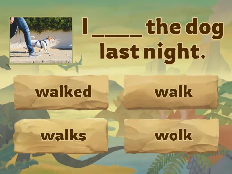1) I ____ the dog last night. a) walked b) walk c) walks d) wolk 2) They ___ juice yesterday. a) drink b) drank c) drunk d) drinked 3) The girl ___ to the shop last year. a) go b) gone c) went d) goed 4) Liz ___ his brother last Sunday. a) helped b) help c) helps d) hear 5) Mary ____ a marathon two days ago. a) runs b) run c) ran d) runed 6) My friends ___ in London last June. a) lives b) lived c) live d) life 7) Children ____ to play on the swings last summer. a) liked b) like c) likes d) alike 8) The boys ___ their bikes very fast yesterday. a) ride b) rode c) ridden d) rided 9) We ___ at the cafe four days ago. a) eat b) eaten c) ate d) eated 10) Willy ___ a birthday a month ago. a) have b) had c) has d) haved