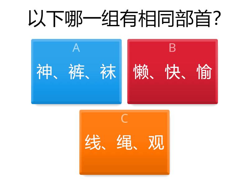 1) 以下哪一组有相同部首? a) 神、裤、袜 b) 懒、快、愉 c) 线、绳、观 2) 数一数“植”的笔画 a) 13 b) 12 c) 14 3) 看图选出正确的词语。 a) 风筝 b) 飞机 c) 岸边 4) 看图选出正确的词语。 a) 水瓶 b) 盒子 c) 水缸 5) 看图选出正确的短语。 a) 肮肮脏脏的哥哥 b) 干干净净的哥哥 c) 漂漂亮亮的哥哥 6) 看图选出正确的句子。 a) 爸爸在大树下吃饭。 b) 爷爷在大树下乘凉。 c) 爷爷在大树下寻找宝藏。 7) 选出正确的形似字。 妈妈用洗米水( )花。 a) 烧 b) 浇 c) 绕 8) 选出正确的形似字。 老师让我们把长方形的纸张对( )。 a) 拆 b) 斤 c) 折 9) 选出正确的形似字。 小晴不小心弄( )了小文的剪刀,她很慌张。 a) 杯 b) 怀 c) 坏 10) 选出正确的形似字。 这本故事真有( ),我读了一遍又一遍。 a) 趣 b) 取 c) 起 11) 选出正确的标点符号。这本书是谁写的( ) a) ? b) , c) ! 12) 选出正确的标点符号。 妈妈开心地说( )( )太好了,小树开花了( )( ) a) :“ !” b) :“ ” ! c) “: ” ! 13) 选出正确的标点符号。 星期五,妈妈要我把华语( )科学( )数学和英文的书本带回家复习。 a) ,, b) ,、 c) 、、 14) 选出正确的答案。小明站在窗前,( )外面的树木和小鸟。 a) 问号 b) 急匆匆 c) 观察 15) 选出正确的关联词。 ( )裙子( )裤子,我都喜欢。 a) 无论......还是 b) 因为......所以 c) 如果......就 d) 又......又 16) 选出正确的答案。爸爸妈妈每天工作很努力,让我们( )。 a) 汗如雨下 b) 肮肮脏脏 c) 丰衣足食 17) 选出正确的答案。小明看到同学摔倒了,他立刻跑过去扶起他,真是( )。 a) 三三两两 b) 见义勇为 c) 分门别类 18) 选出正确的关联词。 ( )今天没有做完工,妈妈( )不给我看电视。 a) 无论......还是 b) 因为......所以 c) 如果......就 d) 又......又 19) 选出正确的关联词。 ( )他生病了,( )他一定要吃药。 a) 无论......还是 b) 因为......所以 c) 如果......就 d) 又......又 20) 选出正确的关联词。 荷叶饭( )香( )软,非常好吃! a) 无论......还是 b) 因为......所以 c) 如果......就 d) 又......又