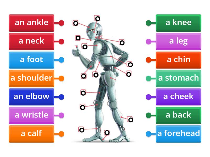a foot, an ankle, a calf, a knee, a leg, an elbow, a stomach, a chin, a cheek, a forehead, a neck, a shoulder, a back, a wristle.