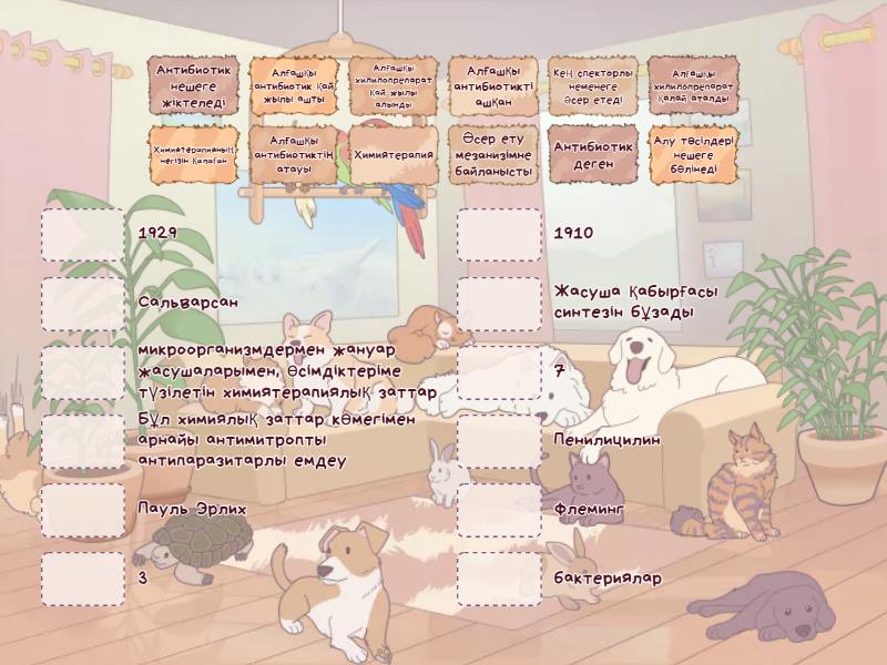 Химиятерапия - Бұл химиялық заттар көмегімен арнайы антимитропты антипаразитарлы емдеу , Антибиотик нешеге жіктеледі - 7, Әсер ету мезанизімне байланысты - Жасуша қабырғасы синтезін бұзады, Кең спекторлы неменеге әсер етеді - бактериялар, Алу тәсілдері нешеге бөлінеді - 3, Алғашқы антибиотикті ашқан - Флеминг, Алғашқы антибиотик қай жылы ашты - 1929, Алғашқы хилилопрепарат қай жылы алынды - 1910, Алғашқы хилилопрепарат қалай аталды - Сальварсан, Химиятерапияның негізін қалаған - Пауль Эрлих, Алғашқы антибиотиктің атауы - Пенилицилин, Антибиотик деген - микроорганизмдермен жануар жасушаларымен, өсімдіктеріме түзілетін химиятерапиялық заттар,