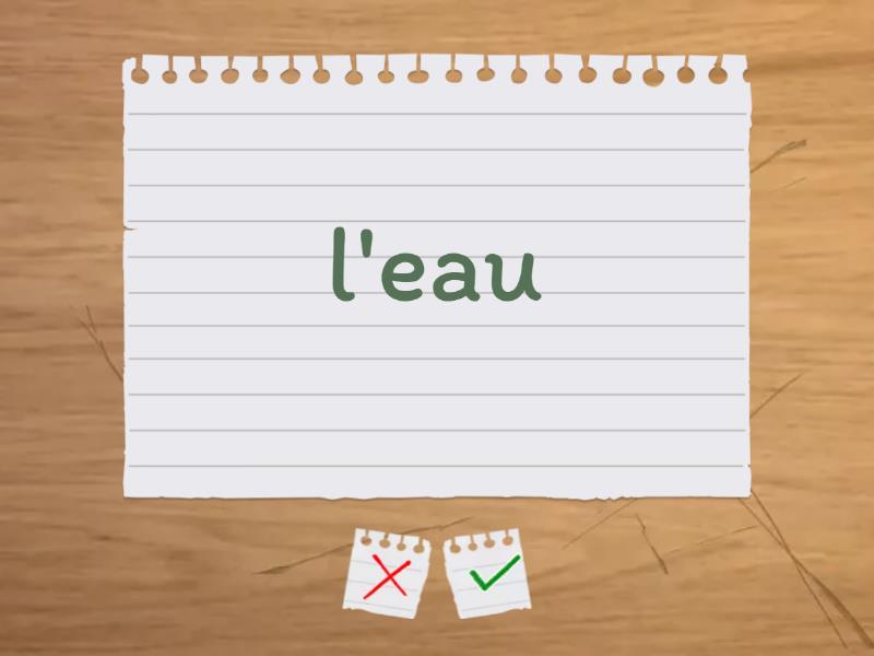 le chat - кот, le loup - волк, le bureau - письменный стол, le bouquet - букет, le parc - парк, la classe - класс, l'eau - вода, rouge - красный, jaune - желтый, noir - черный,
