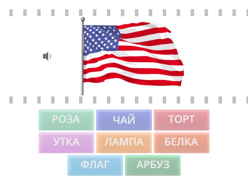 ФЛАГ, ТОРТ, ЛАМПА, АРБУЗ, УТКА, ЧАЙ, РОЗА, БЕЛКА,