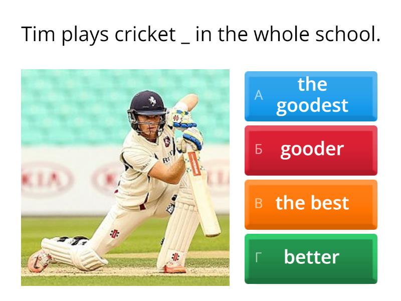 1) Tim plays cricket _ in the whole school. a) the goodest b) gooder c) the best d) better 2) You can buy tickets for the game _ on the internet. a) the most easily b) easier c) easilier d) most easy 3) I read the article _ the second time. a) carefuller b) more carefully c) carefullier d) more careful 4) James speaks _ than everyone else in our house. a) fast b) fastest c) faster d) fastlier 5) My sister sings _ than I do. a) more beautiful b) most beautifully c) the most beautifully d) more beautifully 6) Anna works _ at her pronunciation in our group a) hardly b) the hardest c) harder d) the hardliest 7) Who skates _ of all in your team? a) worse b) baddest c) the most badly d) the worst