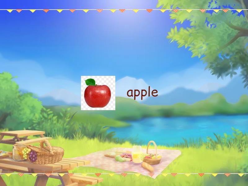 ant, apple, banana, bear, cat, cake, dog, duck, egg, elephant, fan, fish.