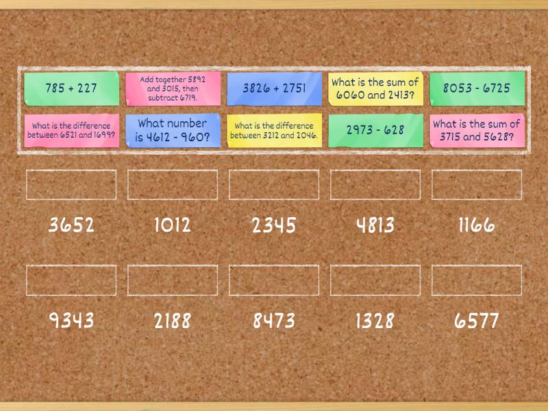 8053 - 6725 - 1328, What is the difference between 3212 and 2046. - 1166, What is the sum of 6060 and 2413? - 8473, Add together 5892 and 3015, then subtract 6719. - 2188, 3826 + 2751 - 6577, 2973 - 628 - 2345, What number is 4612 - 960? - 3652, 785 + 227 - 1012, What is the difference between 6521 and 1699? - 4813, What is the sum of 3715 and 5628? - 9343,