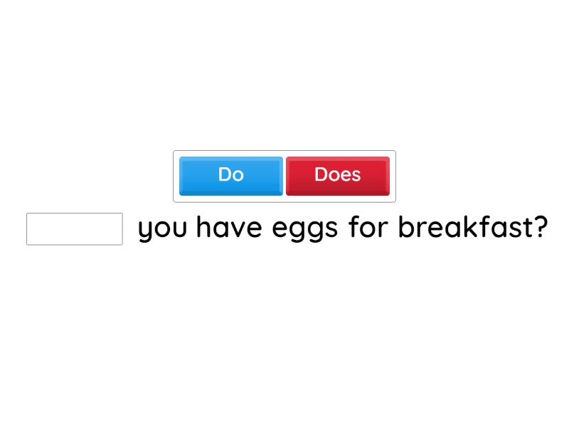 ____ you have eggs for breakfast? ____ Emma like peppers? ____ Nico have meatballs for dinner? ____ you like carrots? ____ she have chips for lunch? ____ Mateo like sandwiches? ____ you have rice for dinner? ____ you like pea? ____ she have cereal for breakfast? ____ you like apples? ____ he have yoghurt for dinner? ____ Martina like peppers? ____ you have pizza for dinner? ____ Luna like lollipops? ____ Rodrigo have chicken and chips for dinner?