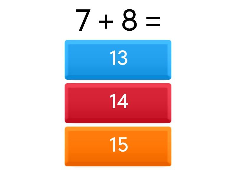 1) 7 + 8 = a) 13 b) 14 c) 15 2) 7 + 7 = a) 13 b) 14 c) 15 3) 7 + 5 = a) 12 b) 13 c) 14 4) 7 + 9 = a) 15 b) 16 c) 17 5) 7 + 6 = a) 13 b) 14 c) 15 6) 7 + 4 = a) 9 b) 10 c) 11