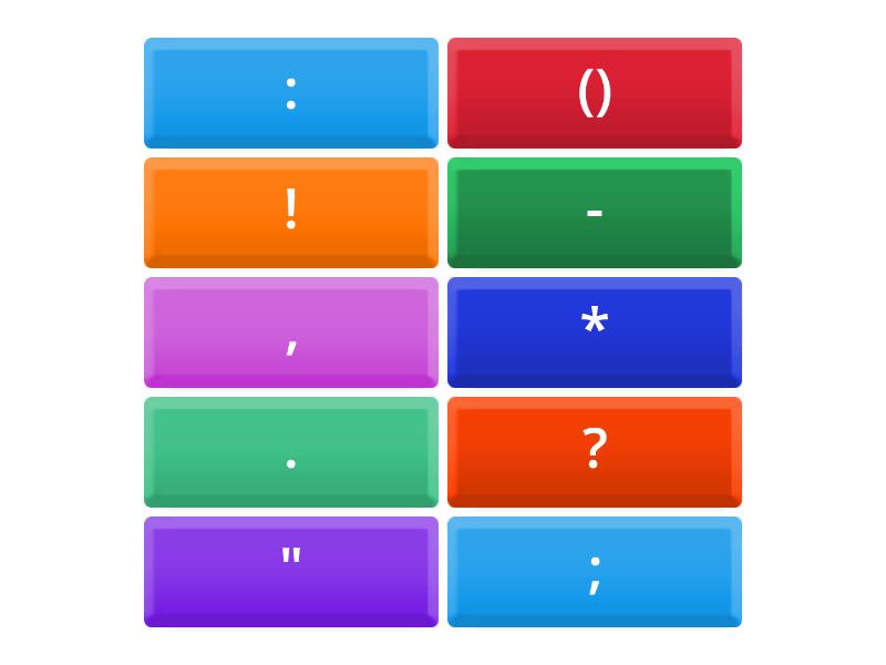 . - period, ! - exclamation point, ? - question mark, , - comma, - - dash, " - quotation mark, () - parentheses, * - asterisk, ; - semi-colon, : - colon,