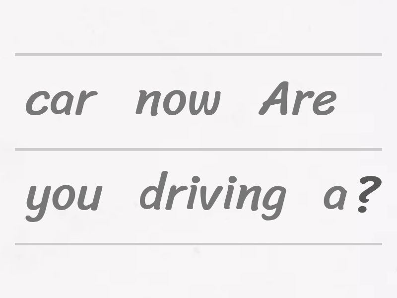Are you driving a car now?, Is she dancing on the grass?, Are they travelling to England?, Is Peter cooking lunch now?, Are you drinking hot milk?, Are they flying in the sky?, Is Mary sleeping in her bedroom?, Are you painting a blue elephant?, Are we walking to school today?, Is George climbing the big tree?, Are they doing their homework?, Is Polly eating bananas now?, Is he playing a computer game?, Are they decorating the Christmas tree?,