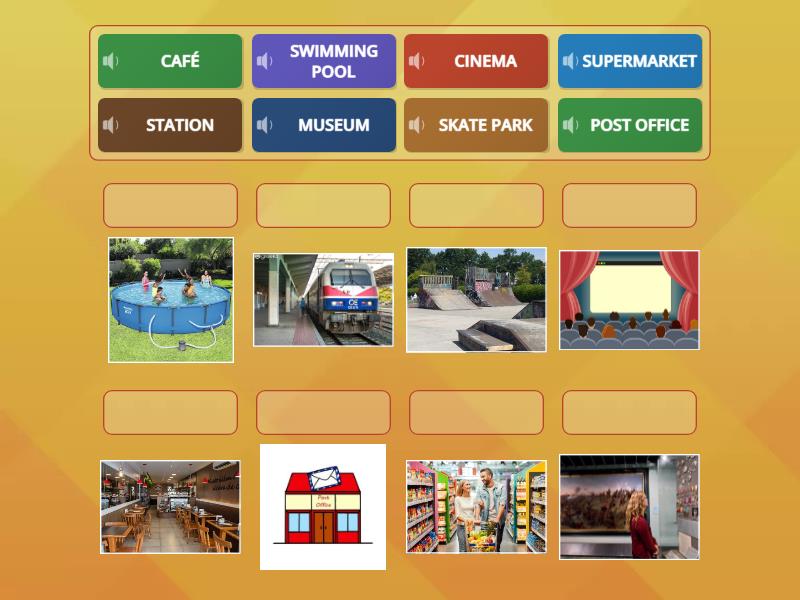 POST OFFICE, MUSEUM, SWIMMING POOL, SUPERMARKET, SKATE PARK, CINEMA, CAFÉ, STATION,