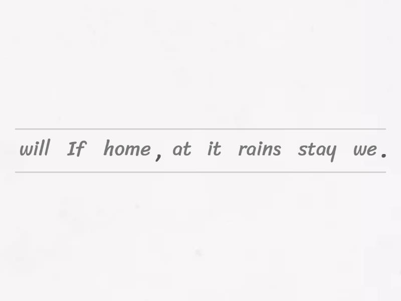 If it rains, we will stay at home., If she studies hard, she will pass the exam., If he doesn't hurry, he will miss the bus., If they invite us, we will go to the party., If you eat too much, you will feel sick., If she saves enough money, she will buy a new phone., If we leave now, we will arrive on time., If he plays well, he will make the team., If you don't water the plants, they will die., If it gets cold, we will turn on the heater., She got an A on the test because she studied hard., The dog ate all its food because it was very hungry., They arrived late because the traffic was heavy., She overslept because she forgot to set her alarm., They went hiking because the weather was perfect., She went to bed early because she was very tired.,