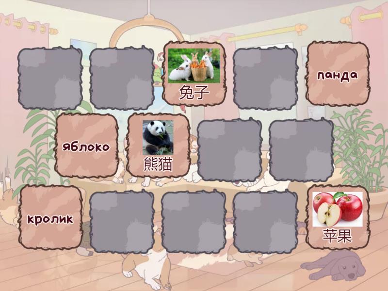 兔子 - кролик, 熊猫 - панда, 苹果 - яблоко, 竹子 - бамбук, 香蕉 - банан, 猫 - кошка, 晚上 - вечер,