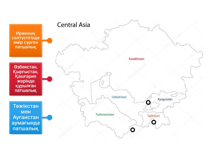 Тәжікстан мен Ауғанстан аумағында патшалық, Өзбекстан, Қырғыстан, Қашғария жерінде құрылған патшалық, Иранның солтүстігінде өмір сүрген патшалық.