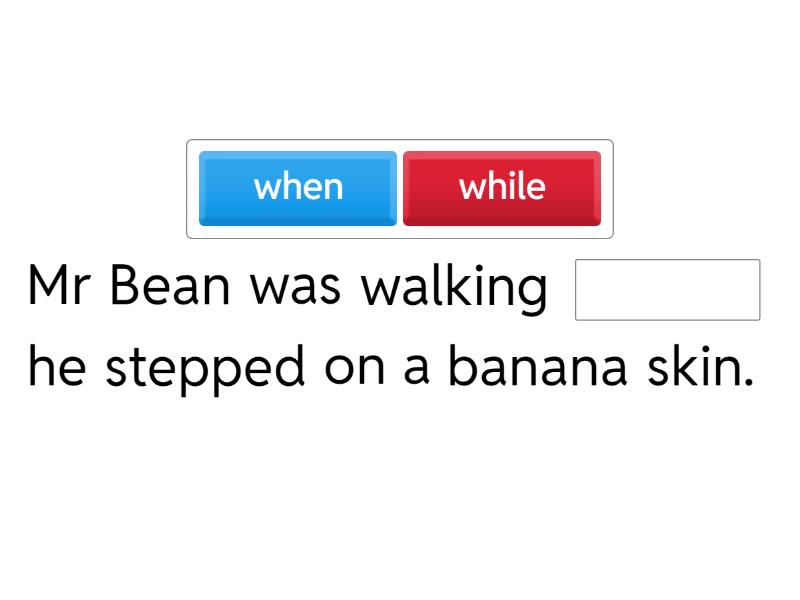 Mr Bean was walking ____ he stepped on a banana skin. The children were laughing ____ Mr Adam was saying some jokes. Ivan met Hanzala ____ he was playing in the playground. ____ the thief was escaping, Alan saw him. Minions were singing songs ____ Ken was dancing. I was using iPad ____ I was learning English.