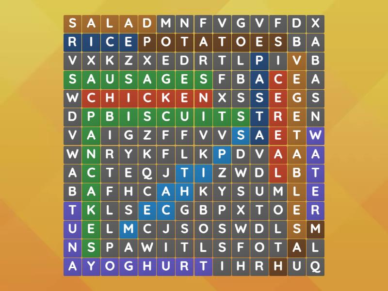 biscuits, tuna, cereal, ham, vegetables, pancakes, chicken, meat, rice, salad, sausages, yoghurt,