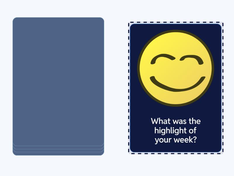 What was the highlight of your week?, When you were growing up, what was your dream job? Is any part of that still true?, If you had to pick one – skydiving, bungee jumping, or scuba diving – which would you do? Why?, Which of your family members are you most like? Explain., What’s the most embarrassing thing you did at school / when you were a kid?.