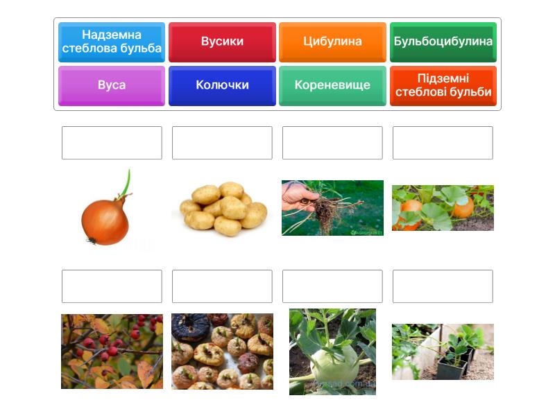 Надземна стеблова бульба, Вуса, Вусики, Колючки, Підземні стеблові бульби, Цибулина, Бульбоцибулина, Кореневище,