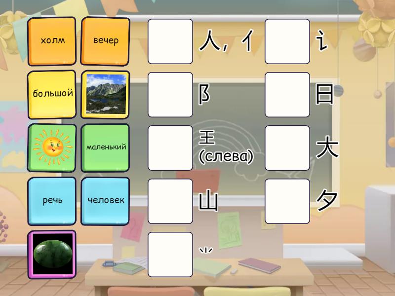 月, 口, 山, человек - 人,亻, большой - 大, вечер - 夕, 王 (слева), 宀, женщина - 女, 心, 日, белый - 白, шелк - 纟, маленький - ⺌, речь - 讠, камень - 石, холм - 阝,