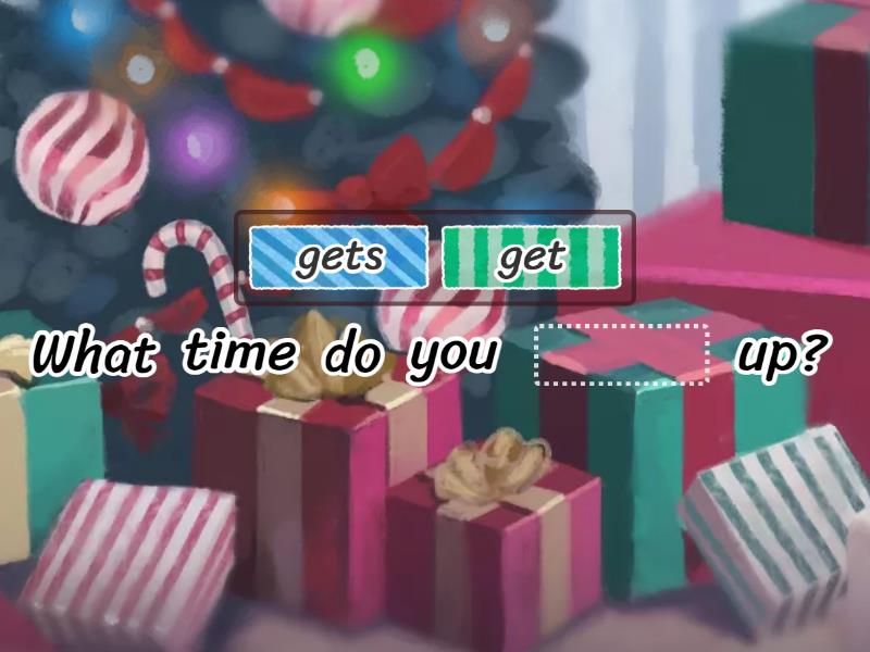 What time do you ____ up? What time does she ____ to school? She ____ to school at 8:00. What time do Peter and John ____ breakfast? What time ____ Helen have dinner? What time ____ they have lunch? They ____ lunch at school. What time does Mom ____ dinner? Mom ____ lunch at home.