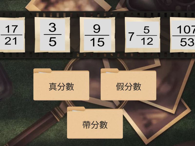 真分數: , , , , , 假分數: , , 帶分數: , , ,