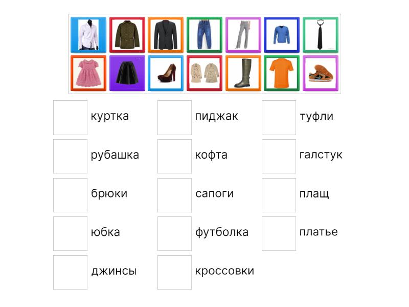 плащ, юбка, джинсы, кофта, футболка, платье, рубашка, туфли, кроссовки, брюки, пиджак, куртка, галстук, сапоги,