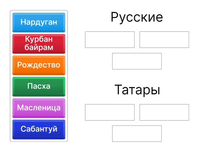 Русские: Масленица, Рождество, Пасха, Татары: Сабантуй, Курбан байрам, Нардуган,