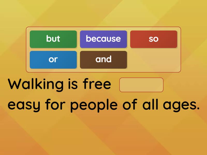 Walking is free ____ easy for people of all ages. You can walk in the park ____ on the beach. He started walking everyday ____ the doctor said it was important. She finished work at 12pm ____ she went for a walk in the afternoon. The weather was cold ____ we still went for a walk. He enjoys walking in the bush ____ he listens to music while he walks. The walk was long ____ we decided to have a rest. You can walk alone ____ with friends. We walked for an hour ____ we still felt good afterwards. She walks every day now ____ she wants to get healthy this year.
