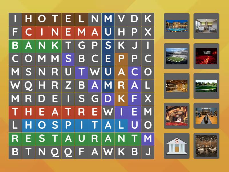 bank, cafe, cinema, hospital, hotel, museum, park, restaurant, stadium, theatre,