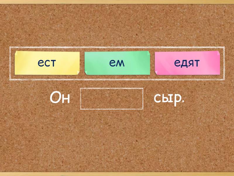 Я ____ бутерброд. Я ____ сок. Я ____ апельсин. я ____ молоко. Он ____ яйцо. Он ____ чай. Он ____ яблоко. Он ____ воду. Они ____спагетти. Они ____ кофе. Они ____ йогурт. Они ____ лимонад. Я ____ брокколи. Он ____ сыр. Они ____ пиццу. Я ____ воду. Он ____ сок. Они ____ молоко.