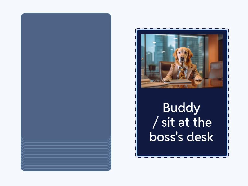 Mary / write an email, Penny / give a presentation, Lorna and David / talk, Michael and Sally / work, Pedro / have a Teams meeting, Fran / make photocopies, Graham / daydream, Derek / shout at his phone, Julian / eat , Deirdre and Phoebe / gossip, Helen / paint her fingernails, Duncan / sleep, Craig / hit his computer with a bat, my colleagues / have a race with their office chairs, the sales team / celebrate, Jim / have a toothache, Andy / serenade Pam, Ricky / dance, Karen and Margaret / fight, Scott / smoke, Sam and George / play a computer game, Colin / leave the office, Buddy / sit at the boss's desk.