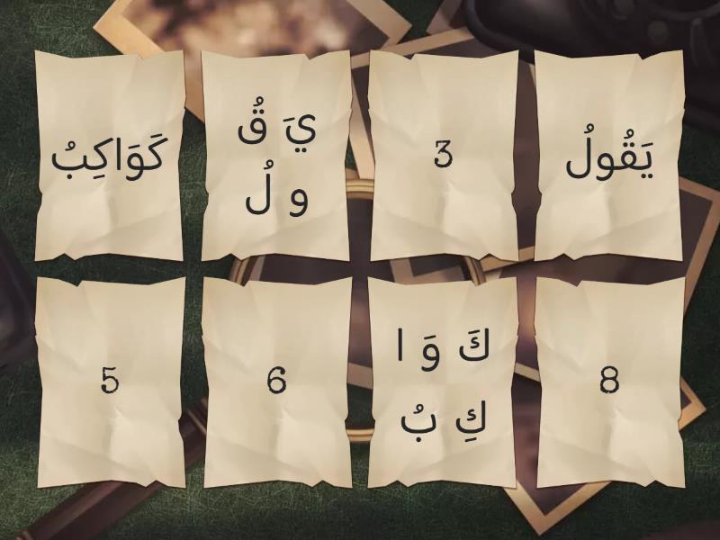 يَقُولُ - يَ قُ و لُ, كَوَاكِبُ - كَ وَ ا كِ بُ, وَيَرِثُهَا - وَ يَ رِ ثُ هَ ا, قَالَ - قَ ا لَ,
