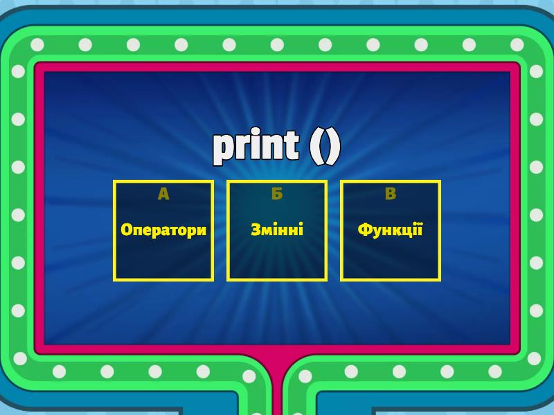 1) ** a) Функції b) Змінні c) Оператори 2) x a) Функції b) Змінні c) Оператори 3) str () a) Функції b) Змінні c) Оператори 4) float () a) Функції b) Змінні c) Оператори 5) int () a) Функції b) Змінні c) Оператори 6) + a) Функції b) Змінні c) Оператори 7) y a) Функції b) Змінні c) Оператори 8) input () a) Функції b) Змінні c) Оператори 9) * a) Функції b) Змінні c) Оператори 10) a a) Функції b) Змінні c) Оператори 11) % a) Функції b) Змінні c) Оператори 12) - a) Функції b) Змінні c) Оператори 13) b a) Функції b) Змінні c) Оператори 14) c a) Функції b) Змінні c) Оператори 15) v1 a) Функції b) Змінні c) Оператори 16) print () a) Функції b) Змінні c) Оператори 17) // a) Функції b) Змінні c) Оператори 18) name a) Функції b) Змінні c) Оператори 19) / a) Функції b) Змінні c) Оператори