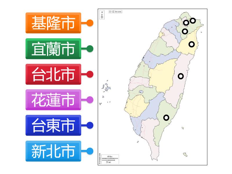 新北市, 台北市, 基隆市, 宜蘭市, 花蓮市, 台東市.