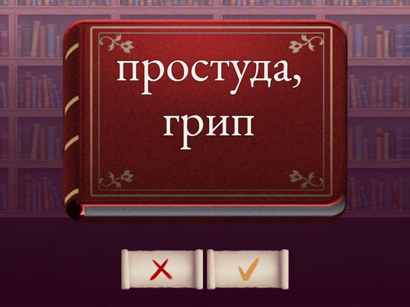 запалене горло (болить горло - sore throat , кашель - cough, температура - temperature, простуда, грип - cold, flu, головний біль - headache, біль шлунку - stomach ache, біль в зубі - toothache, прийняти ліки - take some medicine, прприйняти трохи сиропу від кашлю - take some cough syrop, плями - spots, язик - tongue, вологий - moist, гладкий - smooth, тілесний (бежевий) - pale, впливати - affect, здоровʼя - health, багатий на щось - rich in , гарбуз - pumpkin, нігті - nails, губи - lips, містити - contain,