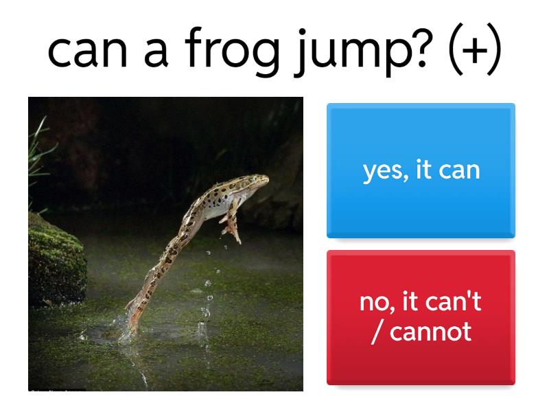 1) can a frog jump? (+) a) yes, it can b) no, it can't / cannot 2) can you draw a cat? (-) a) yes, you can b) no, you can't / cannot 3) can the bird fly? (+) a) yes, it can b) no, it can't / cannot 4) can a dog run? (+) a) yes, it can b) no, it can't / cannot 5) can a rabbit hop? (+) a) yes, it can b) no, it can't / cannot 6) can a fish ride a bike? (-) a) yes, it can b) no, it can't / cannot 7) can a horse kick a ball? (+) a) yes, it can b) no, it can't / cannot 8) can a cat juggle? (-) a) yes, it can b) no, it can't / cannot 9) can a parrot throw a frisbee? (-) a) yes, it can b) no, it can't / cannot 10) can a duck swim? (+) a) yes, it can b) no, it can't / cannot 11) can a snake talk? (-) a) yes, it can b) no, it can't / cannot 12) can we read a book? (+) a) yes, we can b) no, we can't / cannot