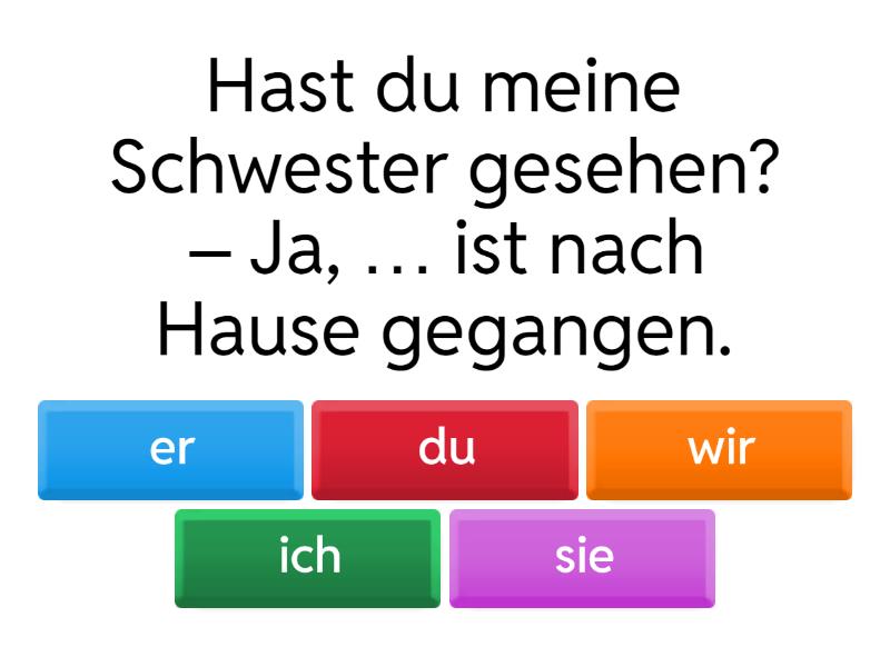 1) Hast du meine Schwester gesehen? – Ja, … ist nach Hause gegangen. a) er b) du c) wir d) ich e) sie 2) Укажите номер подчеркнутого фрагмента, в котором допущена ошибка. Als (1) ich gestern eine Deutsch-Prüfung schrieb (2), konnte ich sich (3) an (4) viele Vokabeln (5) nicht erinnern. a) 1 b) 2 c) 3 d) 4 e) 5 3) Укажите номер подчеркнутого фрагмента, в котором допущена ошибка. Wir haben (1) nicht an (2) das Schwarze Meer gefahren, weil (3) ich im (4) Sommer keinen (5) Urlaub bekommen habe. a) 1 b) 2 c) 3 d) 4 e) 5 4) Der viertkleinste Staat Europas … im Zentrum der europäischen Alpen, zwischen der Schweiz und Österreich. a) lagen b) liegen c) liegst d) liege e) liegt 5) Auch Käsespätzle werden gerne gegessen. Getrunken … früher vor allem Wein. Heute wird auch einheimisches Bier gebraut. a) werden b) werde c) wird d) wurde e) wurdet 6) Seit dem Jahr 1712 befindet sich das Schloss im Besitz der Fürstenfamilie … seit 1938 ist es auch Wohnsitz der Fürstenfamilie. a) deshalb b) und c) oder d) weil e) ob 7) Das Wahrzeichen von Liechtenstein ist das 700 Jahre alte Schloss Vaduz, … majestätisch auf einem Felsen über der Hauptstadt Vaduz liegt. a) das b) dass c) der d) denn e) darum 8) Fahren Sie bis München? – … a) Ja, ich fahre aus München. b) Nach München fahre ich nächste Woche. c) Doch, dieser Bus fährt bis München. d) Nein, nur bis Nürnberg. Möchten Sie mit? e) Oh, ich fahre gern nach München. 9) Natürliche Klimaveränderungen hat es auf der Erde schon immer gegeben, … heute sind die Menschen dafür verantwortlich. a) aber b) oder c) denn d) ob e) damit 10) Укажите номер подчеркнутого фрагмента, в котором допущена ошибка. Wir wollen am (1) Samstag auf den Weihnachtsmarkt (2) gehen und treffen sich (3) um halb sechs (4) vor der Schule. a) 1 b) 2 c) 3 d) 4 11) Укажите номер подчеркнутого фрагмента, в котором допущена ошибка. Wenn (1) wir letzten Sommer in (2) Frankreich waren (3), hatten wir fast keine (4) Schwierigkeiten mit der Sprache. a) 1 b) 2 c) 3 d) 4 12) Wie oft geht ihr ins Kino? – … a) Morgen. b) Letzten Sommer. c) Um zwei. d) Ziemlich selten. e) Jetzt. 13) Hast du heute in der Schule ein Diktat geschrieben? - Nein, wir haben heute ... Diktat geschrieben. a) keinen b) kein c) keiner d) keines e) keine 14) Paul ist traurig, ... er seine Handschuhe verloren hat. a) weil b) denn c) darum d) damit e) aber 15) Какое слово лишнее? Kostas 1) aus Griechenland interessiert 2) sich 3) sehr 4) in 5) für Sport. a) 1 b) 2 c) 3 d) 4 e) 5 16) Найди ошибку. Wir 1) haben 2) zu Hause 3) geblieben und haben 4) uns einen gemütlichen Tag 5) im Garten gemacht. a) 1 b) 2 c) 3 d) 4 e) 5
